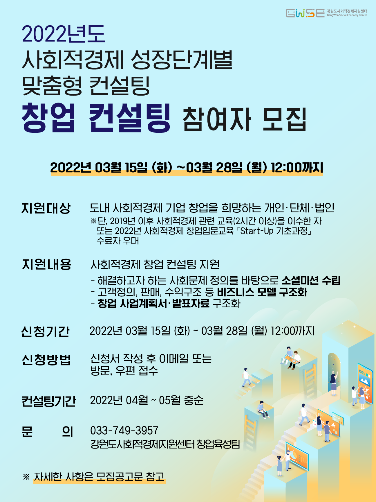 라. 문 의 처: (사)강원도사회적경제지원센터 창업육성팀(☎ 749-3956~7)