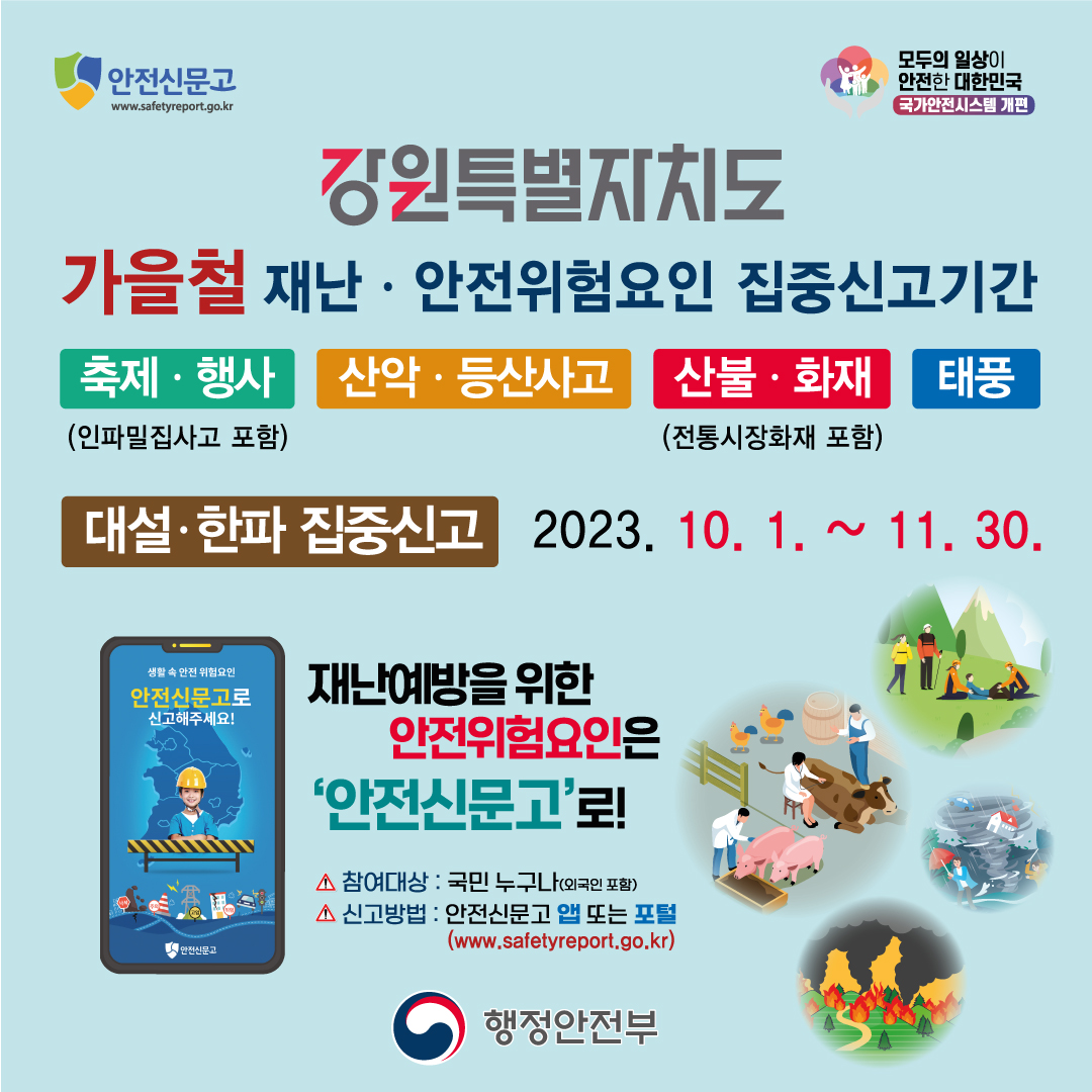 가을철 지역별 안전신고제 운영 홍보물입니다.