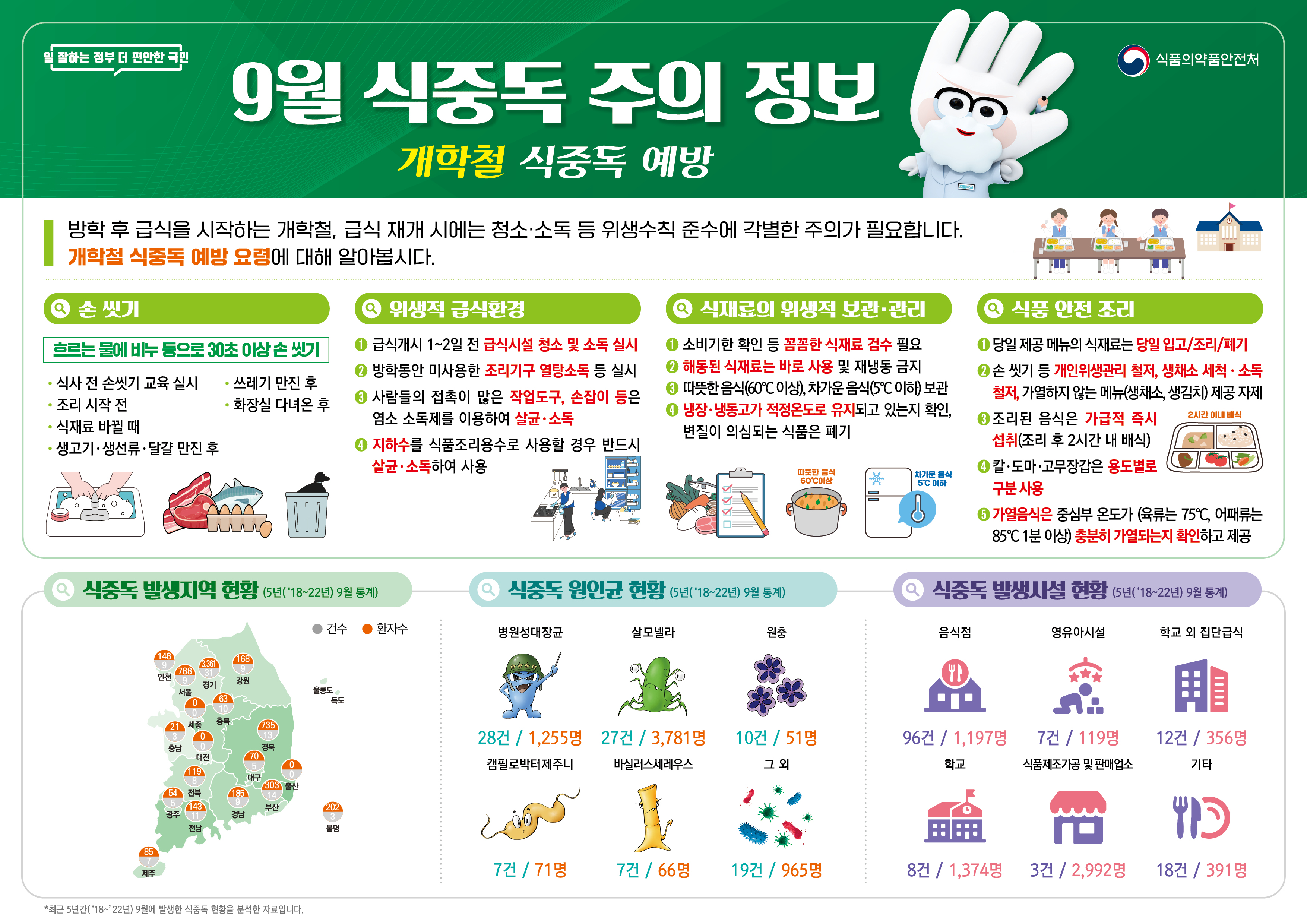 9월 개학철 식중독 예방 요령에 대한 정보를 안내드리니 참고하여주시기 바랍니다.