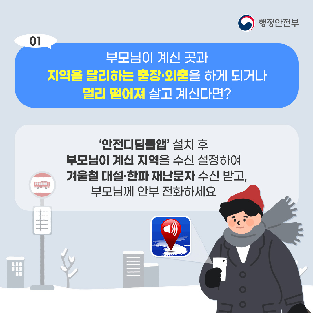 안전디딤돌 앱 활용, 「겨울철 부모님 안전지킴이」