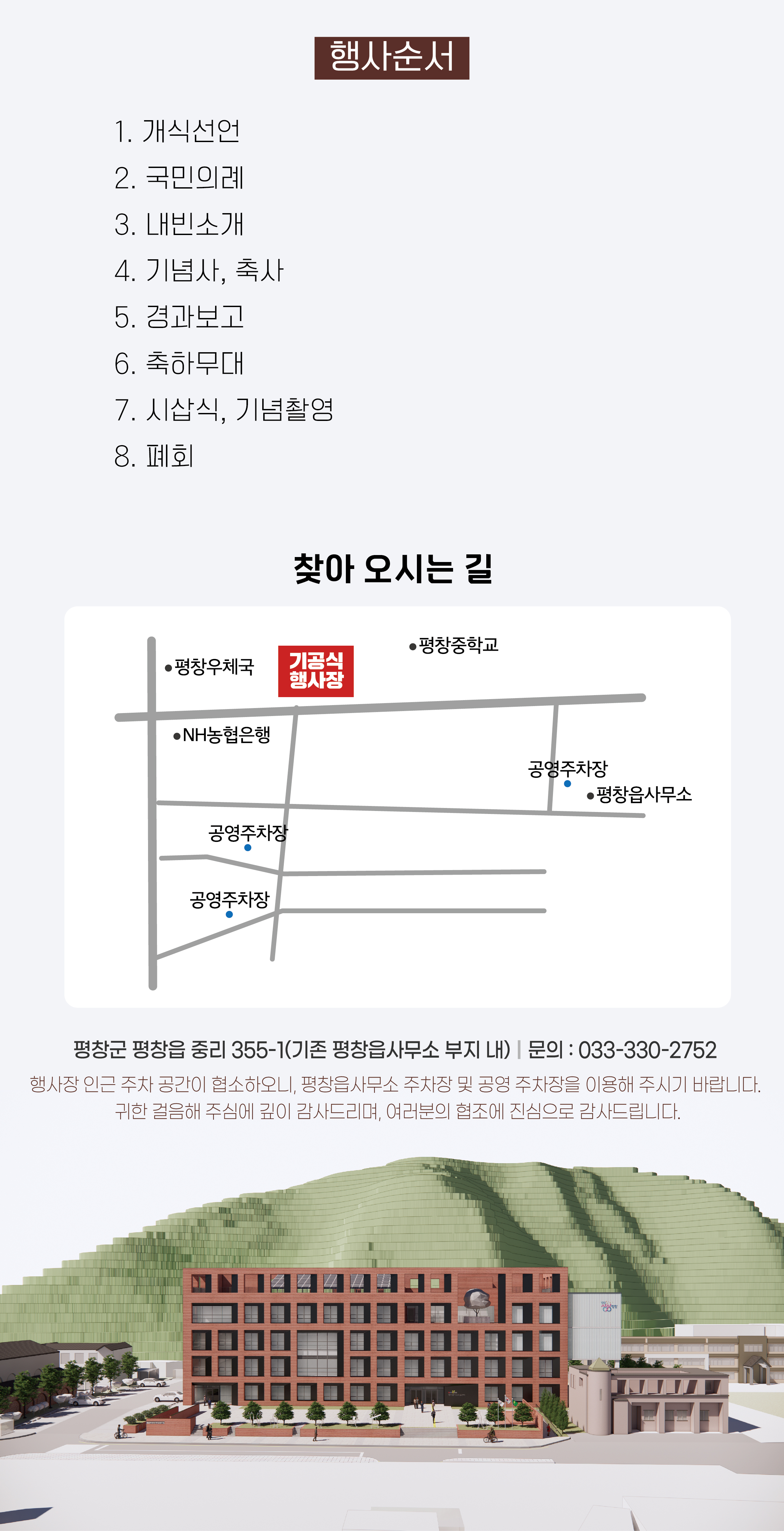 ※ 원활한 행사 진행을 위해 행사 10분 전 도착 및 공영주차장 이용 부탁드립니다.