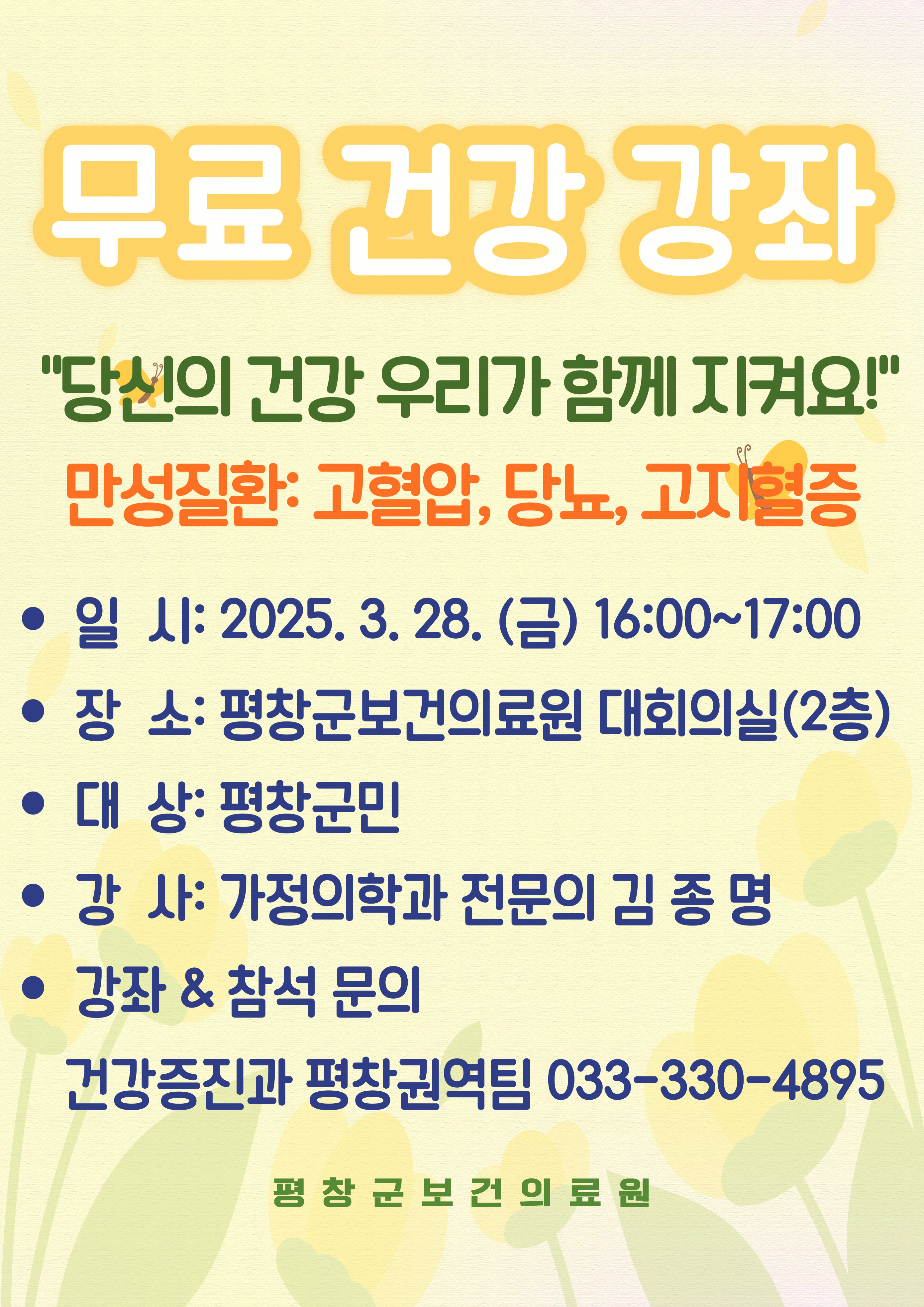 <2025년 평창군보건의료원 무료건강강좌 운영 안내>
