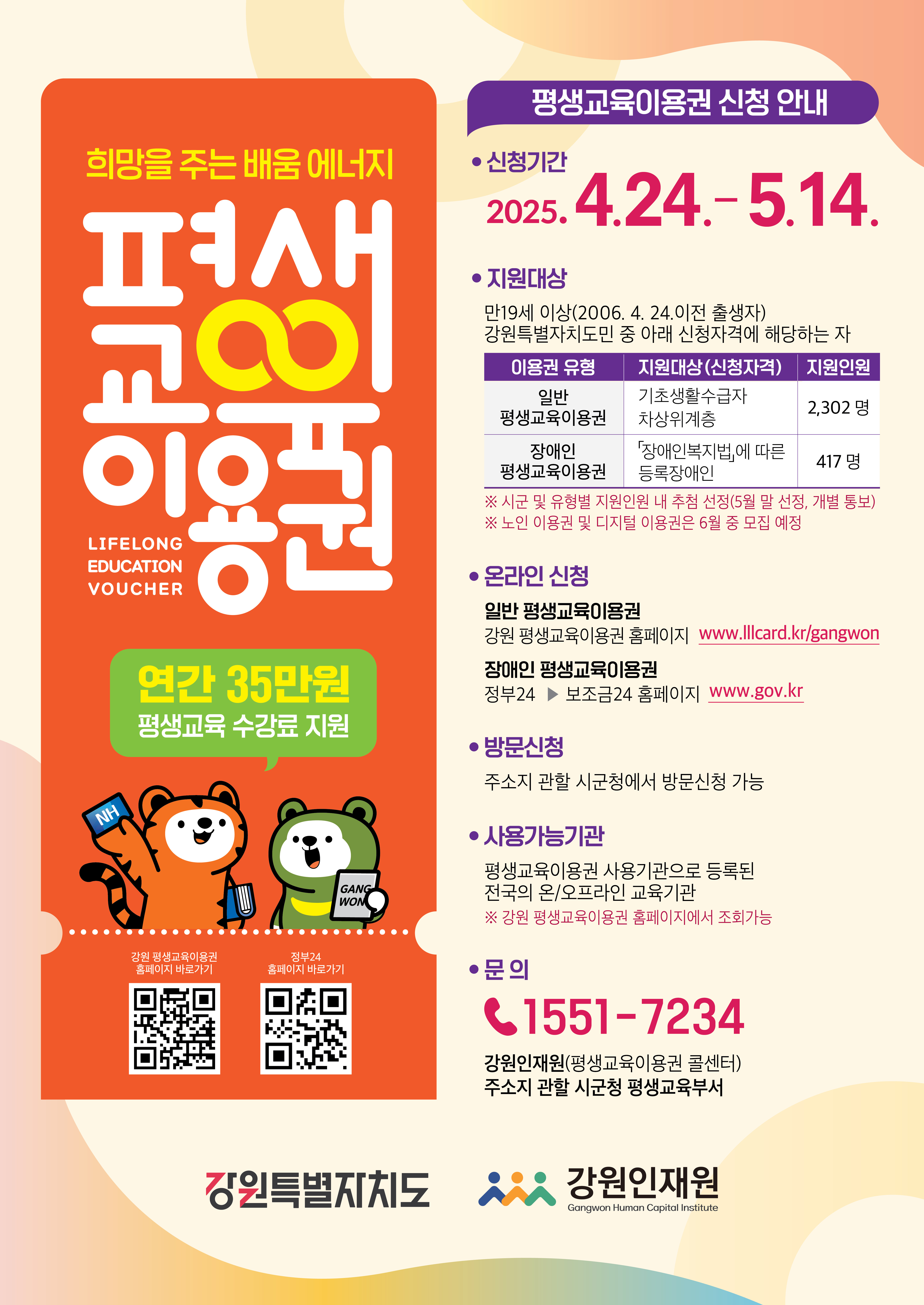 *일반 평생교육이용권: 강원 평생교육이용권 홈페이지