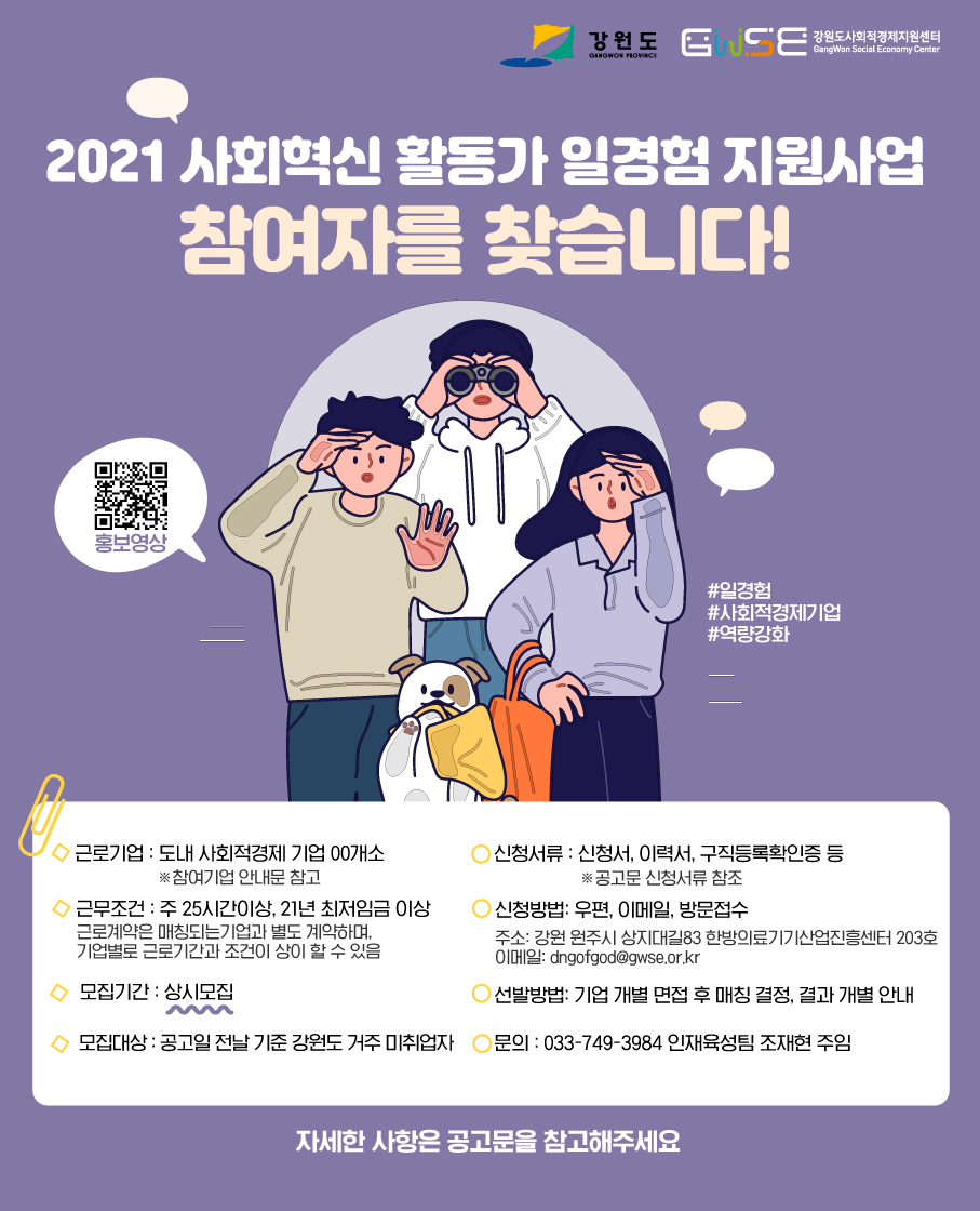 「2021 사회혁신 활동가 일 경험 지원(강원JOBs)」 참여자 모집 홍보 포스터.jpg