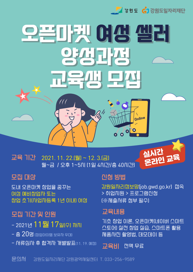2021년 강원도일자리재단 오픈마켓 여성 셀러 양성교육(2차) 참가자 모집 공고