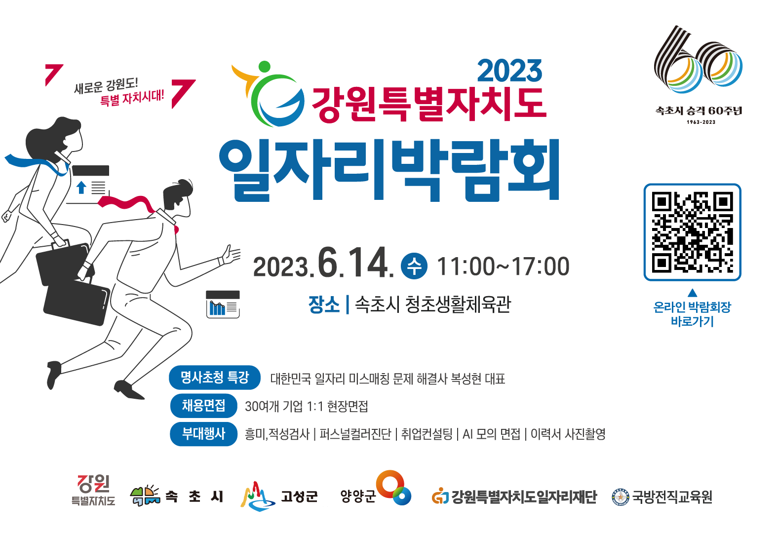 - (온라인) : 2023. 6. 1.(목) ~ 16.(금), 강원일자리정보망 박람회 전용관